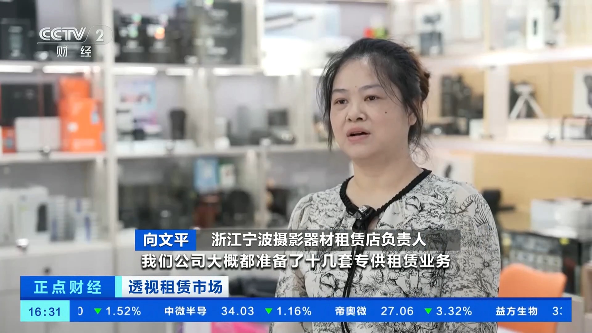 浙江宁波摄影器材租赁店负责人 向文平:特别是节假日的时候一机难求股天乐,我们公司大概准备了十几套专供租赁业务,日租金大约是在200-300元一天。